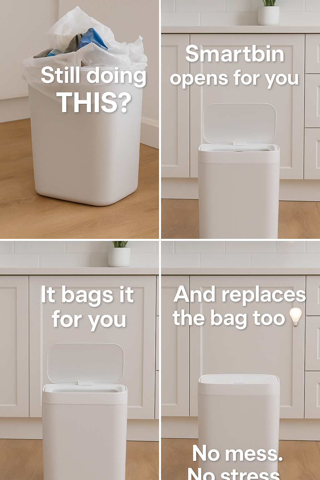 - Precision Bag Placement: Enjoy perfect bag placement every time. The SmartBin’s intelligent mechanism ensures that each new liner fits snugly and securely, preventing messes and ensuring optimal performance.